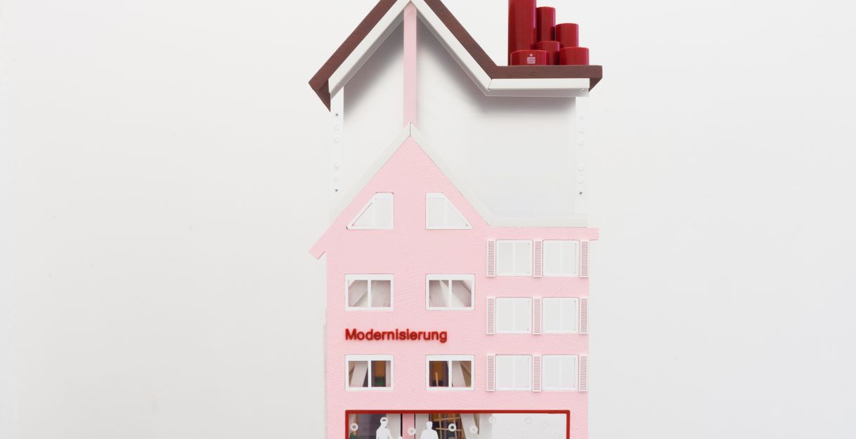 En partant des maisons individuelles et des reliefs de façades des caisses d’épargne, Karla Zipfel examine ces surfaces de l’espace public qui deviennent des symboles du désir collectif de prospérité ainsi que de valeurs telles que le travail, l’épargne et la sécurité sociale.