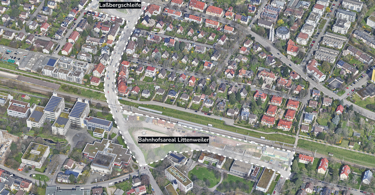 Durch die geplante Verlängerung der Stadtbahnlinie 1 wird die heutige Endhaltestelle an der Laßbergschleife in ihrer jetzigen Funktion nicht mehr benötigt und auch entlang des Bahnhofs Littenweiler gibt es viel Entwicklungspotential. Das Ziel: Beide Bereiche zeitgemäß und funktional zu entwickeln und so eine attraktive neue Mitte für die Menschen in beiden Stadtteilen zu schaffen.